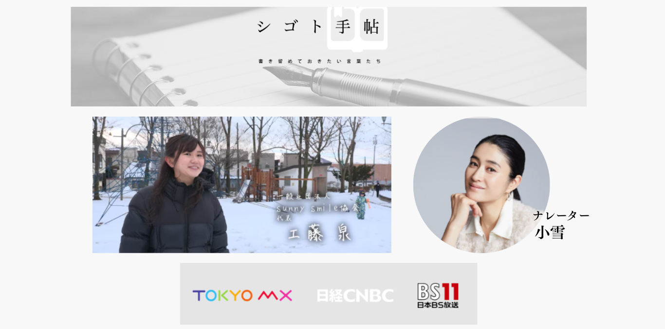 sunnny smile協会の活動が、東京MX「シゴト手帖」で紹介されました。