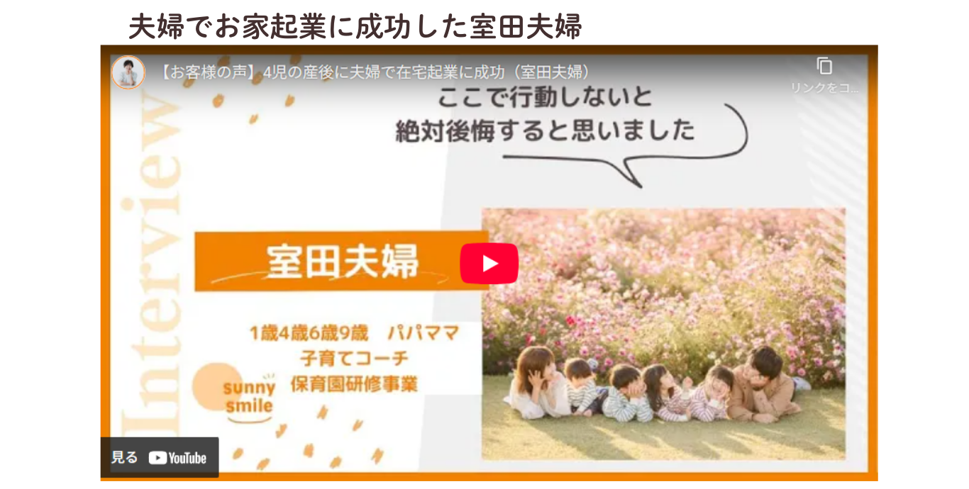 自宅で徹夜で仕事をすることもあり、労力と収入が見合ってないな、子どもとの時間も大切にしたいのにと、ずっとモヤモヤしていたそうです。何か自分でできることがあるのではと起業を決意。一歩踏み出したことで、収入も今までの10倍に!何かやってみたいけど勇気がないと思っている方は、ぜひこの動画を見てくださいね。